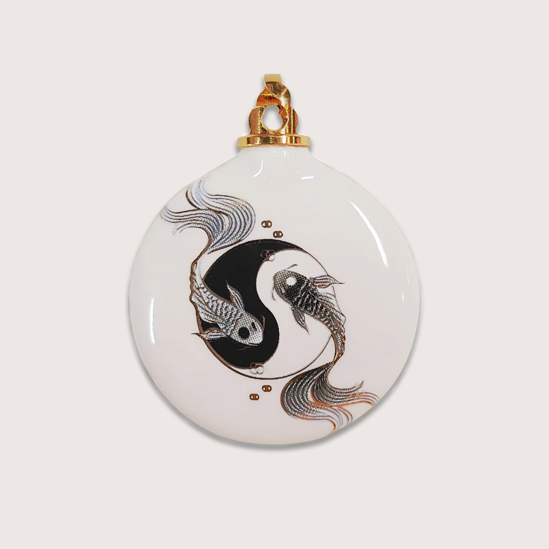 精油瓶以1260度高溫精煉,經過四道工序三次燒製而成,造型上以太極福魚之意象,寓意福氣滿盈,將和平、美好、富有注入其中。
