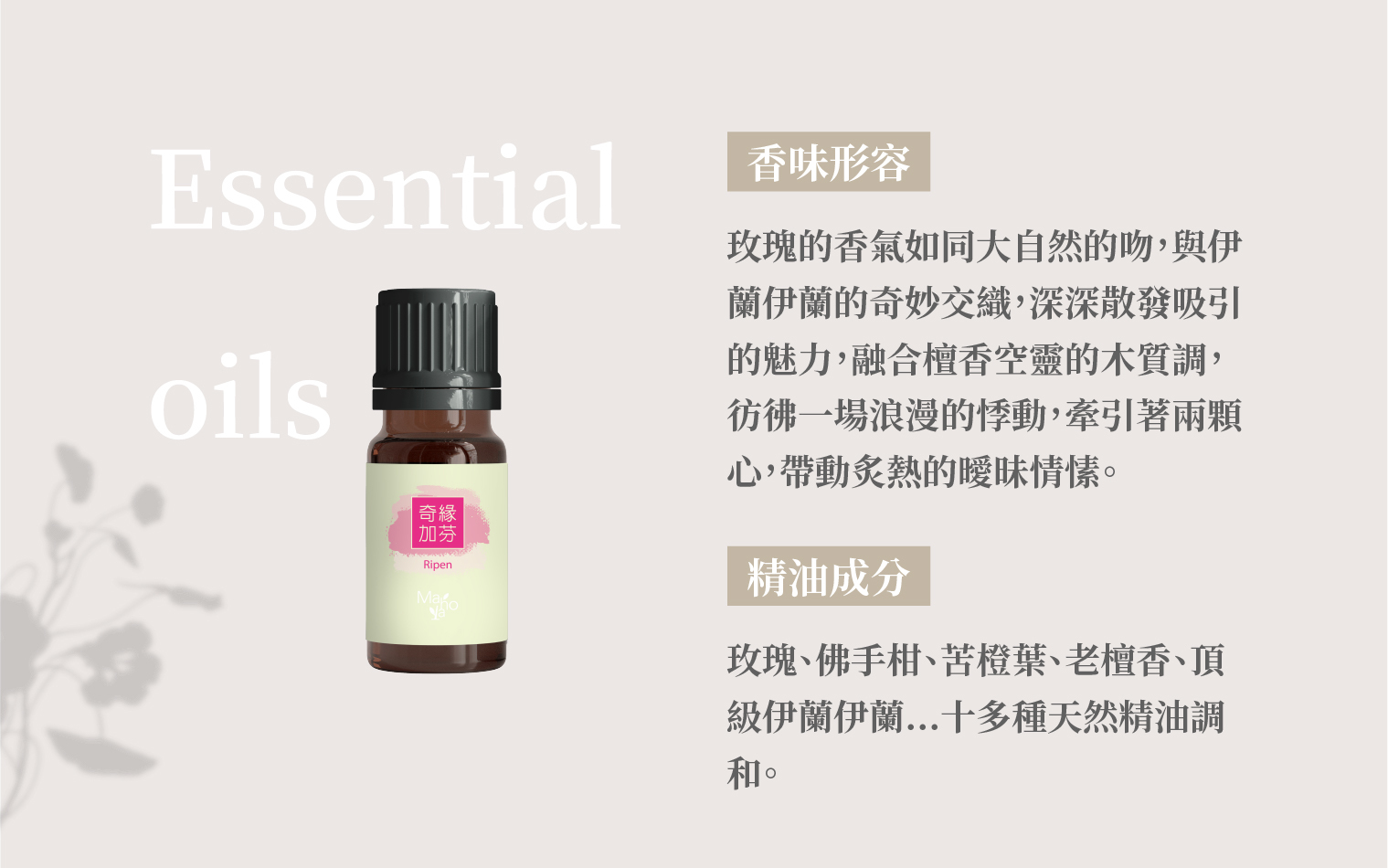▍玫瑰、佛手柑、苦橙葉、老檀香、頂級伊蘭伊蘭