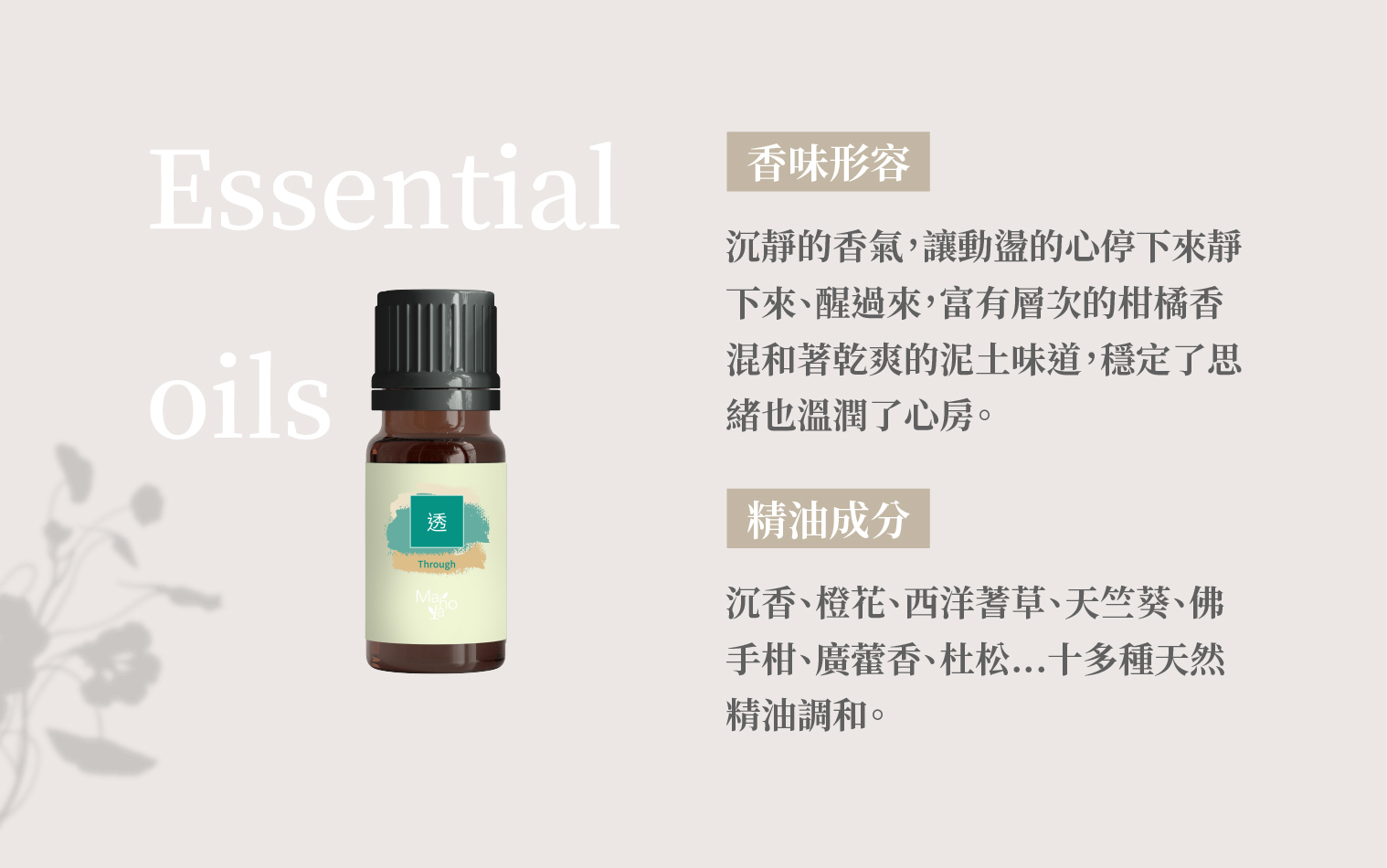 ▍沉香、橙花、西洋蓍草、天竺葵、佛手柑、廣藿香、杜松