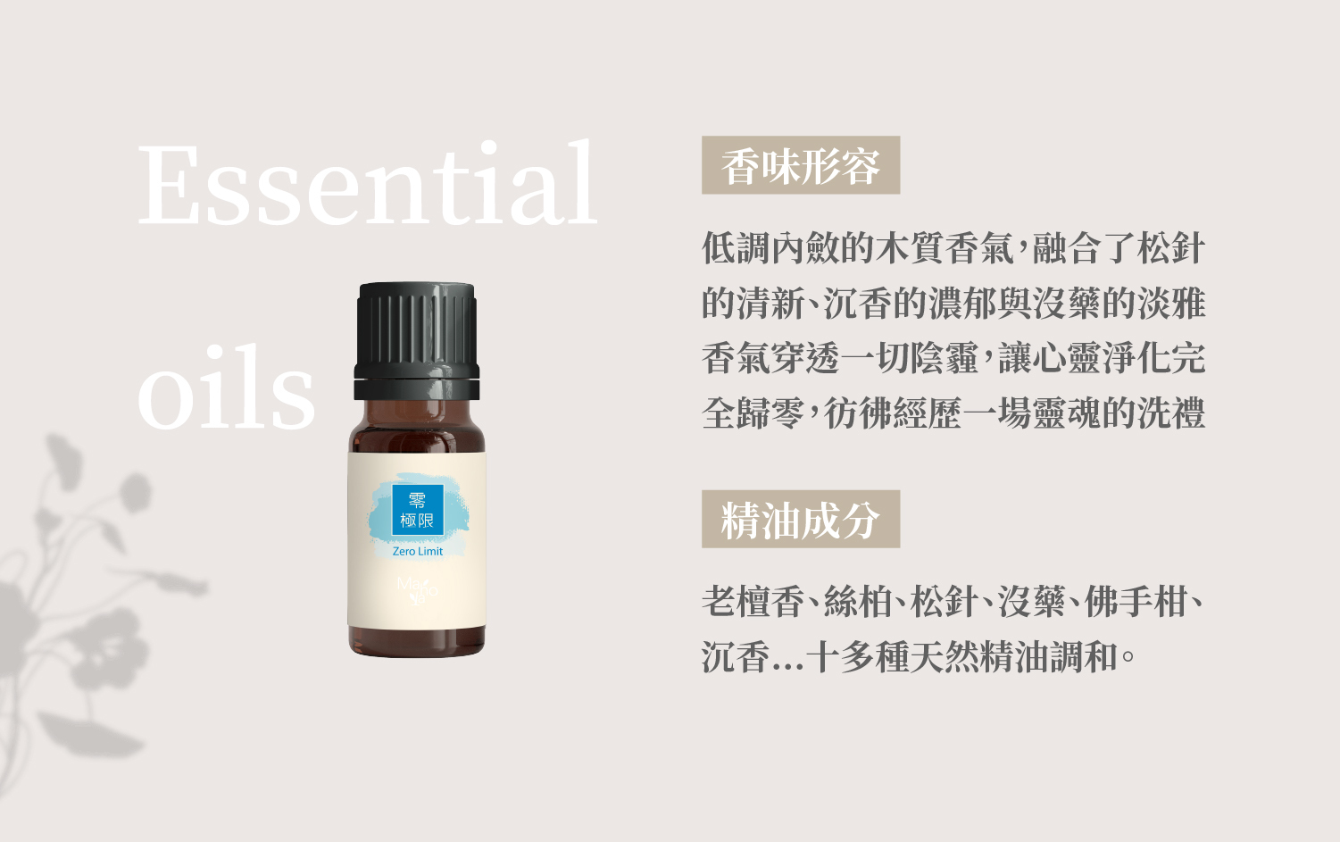 ▍老檀香、絲柏、松針、沒藥、佛手柑、沉香